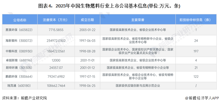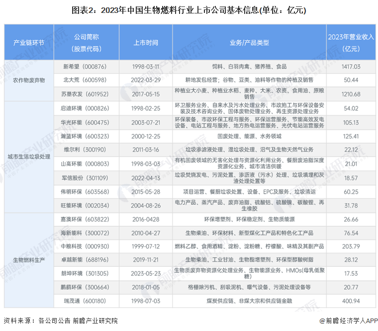 2、生物燃料行业上市公司基本信息对比