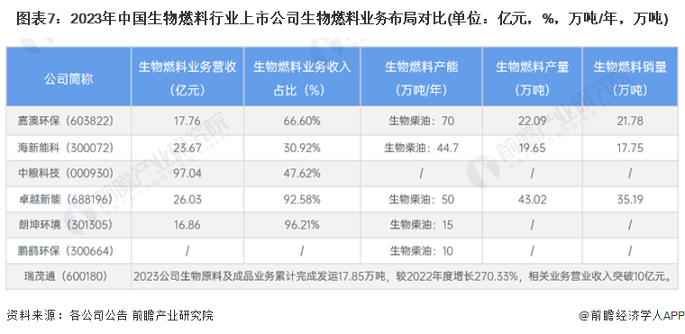 3、生物燃料行业上市公司业务布局对比