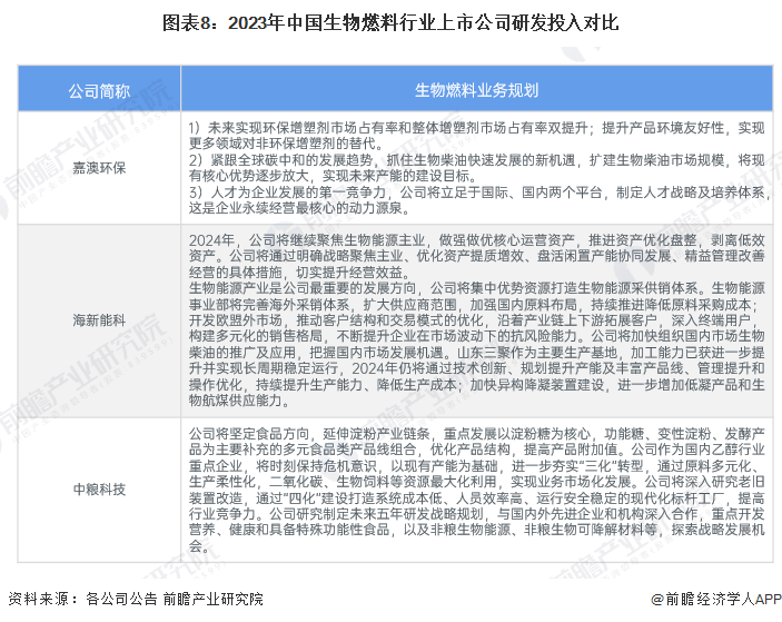 6、生物燃料行业上市公司业务规划对比