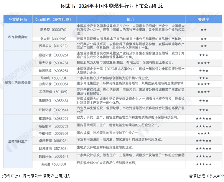 1、生物燃料行业上市公司汇总