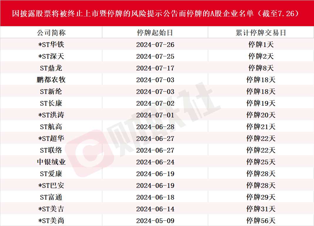 7月13家上市公司告别A股!还有近20只股票拉响退市警报,*ST深天成A股市值退市第一股