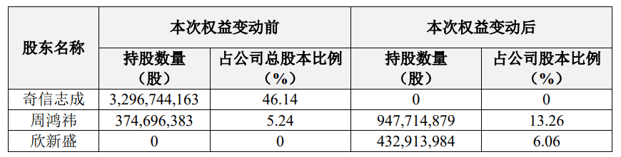 前述交易完成后,奇信志成成为360控股股东,并和周鸿祎互为一致行动人,周鸿祎为360最终实控人。
