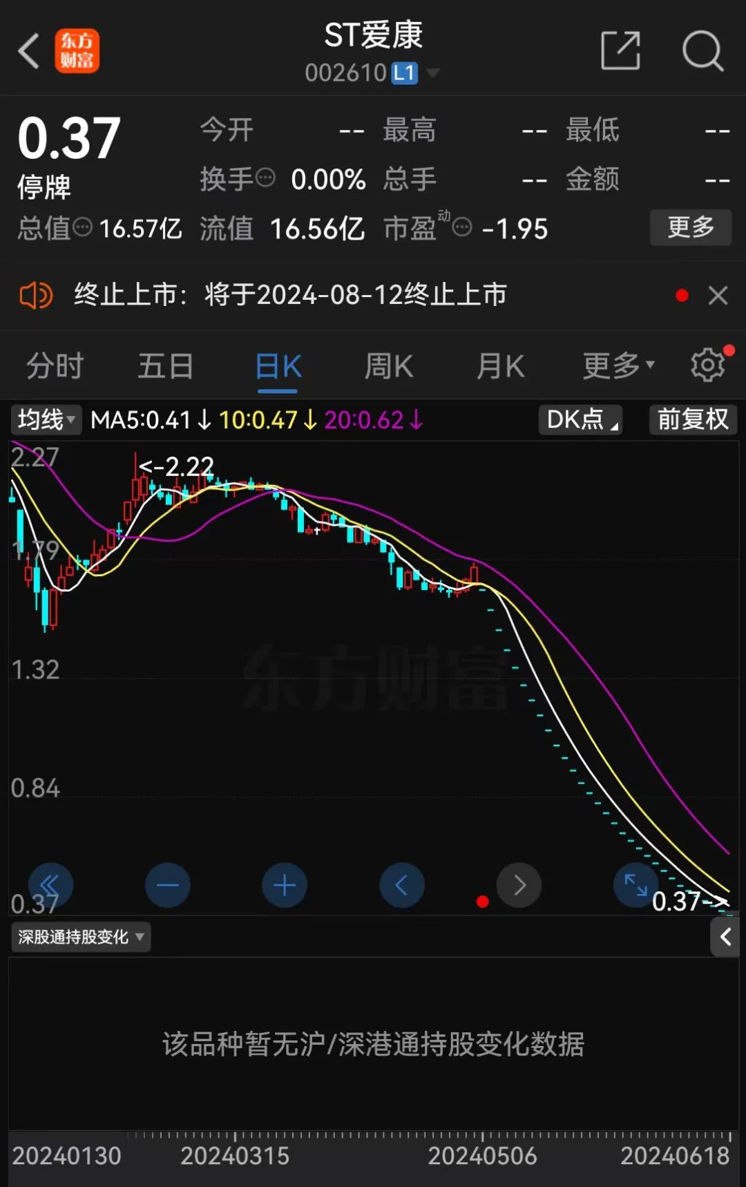 而在6月19日起停牌前,ST爱康连续31个交易日跌停,停牌前收盘价为0.37元/股。