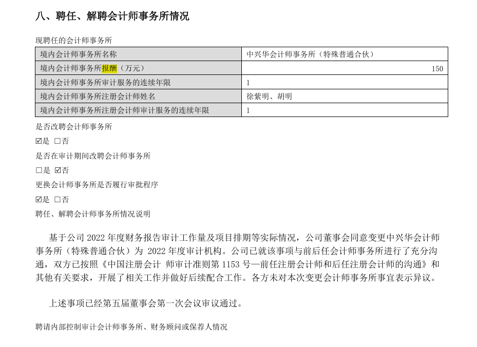 2022年12月下旬,中兴华会计师事务所(特殊普通合伙)(以下简称“中兴华”)与公司签订《审计业务约定书》,双方约定为公司提供2022年度财务报表审计服务,审计费用合计150万元。