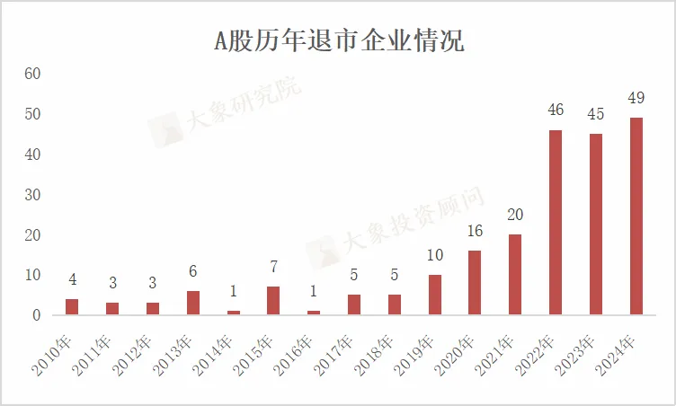 据了解,2024年A股退市数量创下新高,目前已达到49家。此外,因财务造假及业绩连续亏损而退市的个股也相对较多,受到市场较高关注。随着全面实行股票发行注册制改革的正式启动,预计A股上市公司退市节奏有望会进一步加快。