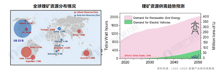 但是,在全球新能源汽车高速发展和储能需求持续扩增下,锂离子电池的生产制造规模显著增长。据数据统计,2023年全球锂资源量约为1.05亿吨,锂储量为2800万吨,全球锂矿(按锂金属量计)约为18万吨,结合LESC的预测数据,未来锂资源的供应量将远远落后于新能源交通工具及电力基础设施对锂资源产生的需求,锂资源短缺的现状将在中长期时间段内对未来全球碳中和目前的推进带来不利影响。