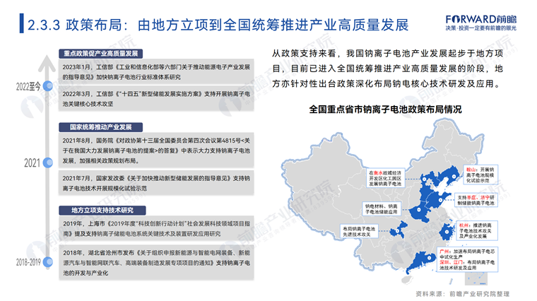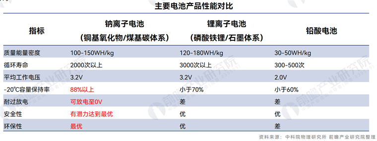 前瞻团队经过多层的新能源资源对比研究,在锂资源短缺的需求下,由于钠资源在全球范围内储量丰富,因此钠离子电池对锂离子电池的替代逐渐成为了新能源行业研究关注的重点内容,由于钠电池在低温性能、耐过放电、安全性和环保性等方面展现了其优秀的性能提升潜力,因此被认为是锂离子电池的潜在替代产品之一,具有广阔的应用前景。