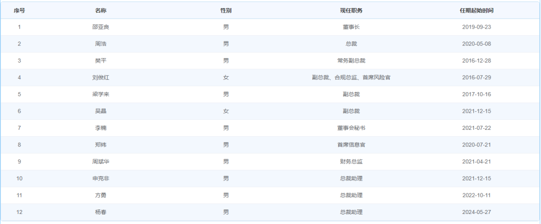 或许是因为港资背景,申港证券的主要高管多达12名,构成“一正四副三助”格局。