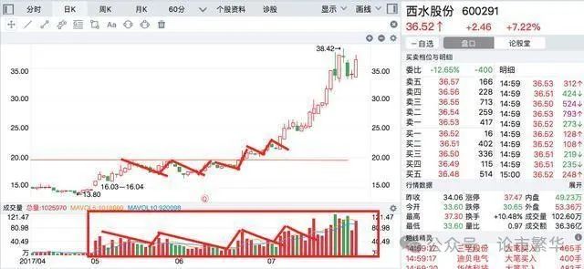 二、股票价格在上涨的时候,下面的成交量会温和放大,股票价格在下跌的时候,下面的成交量会缩下去。如果出现这种情况就说明这只股票是有大资金在里面参与的。因为下跌洗盘不可能放量啊,怎么可能越洗越多呢?