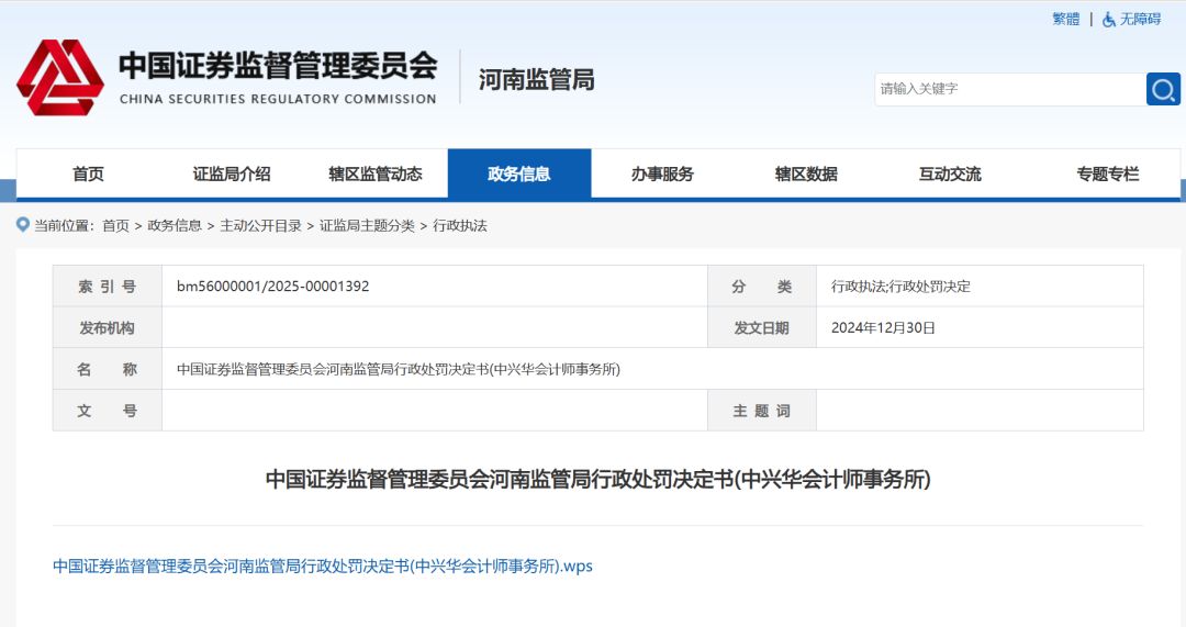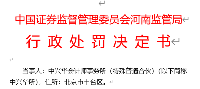 2025-01-06中国证券监督管理委员会河南监管局行政处罚决定书(中兴华会计师事务所)