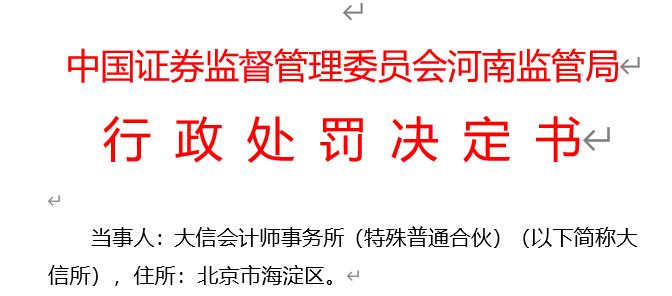2025-01-21中国证券监督管理委员会河南监管局行政处罚决定书(大信会计师事务所)