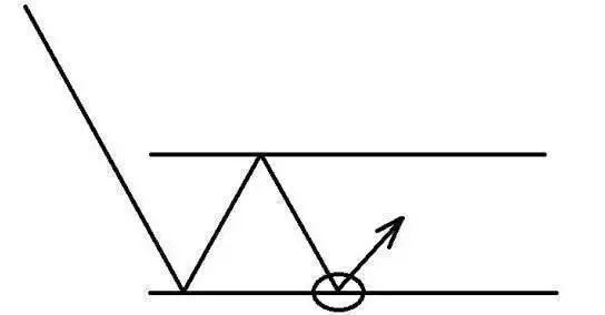 2、当一个股票在下跌趋势中,完成一次的震荡之后,拒绝新低的出现,并再次向上(而被突破)时,此时意味着空头力量衰减,市场暂时均衡,但此时并不需要急于买入,以防震荡后继续重归下跌趋势