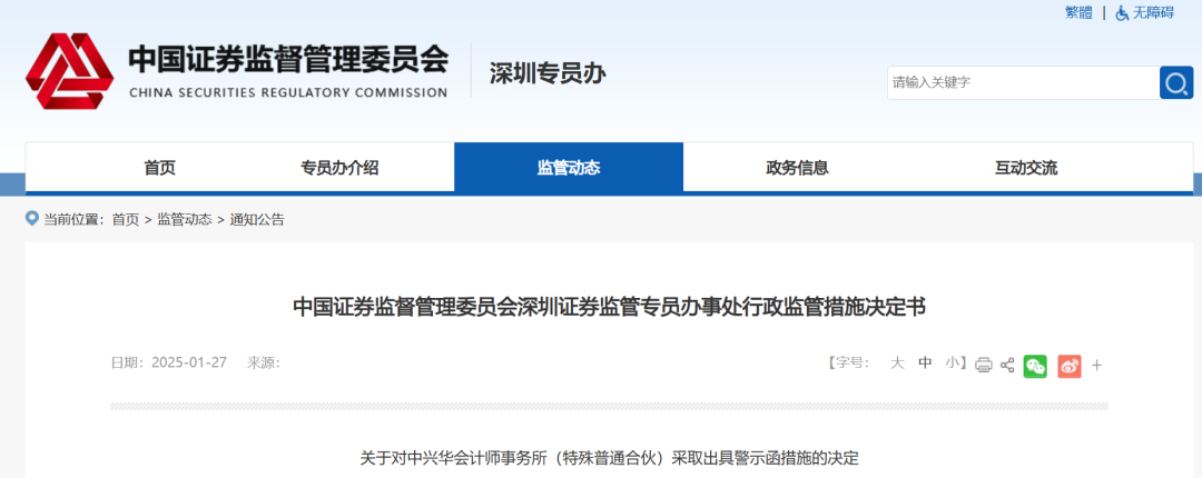 2025年年初以来,多地证监局针对会计师事务所执业质量问题开展专项检查,中兴华会计师事务所因多项违规行为被深圳证监局出具警示函。此外,其他多家事务所也因类似问题被监管机构处罚。具体情况如下: