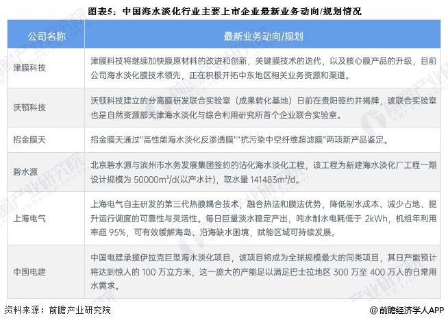 海水淡化产业代表性企业最新业务动向/规划