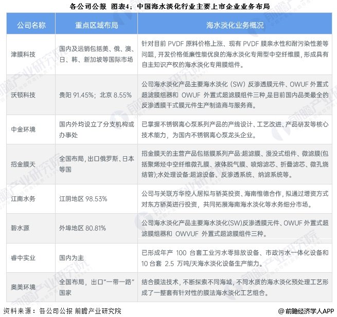 海水淡化产业代表性企业业务布局