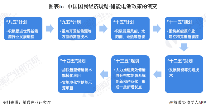 从我们储能电池行业政策发展历程来看,“八五”计划至“十一五”规划时期,国家层面主要强调推进新能源产业的发展;储能电池的相关概念在“十二五”规划中开始被提及,纲要明确要发展储能等先进技术;“十三五”规划进一步明确为大力推进高效储能与分布式能源系统领域创新和产业化;2021年,“十四五”规划在储能技术、储能能力、储能项目方面都做出了要求。