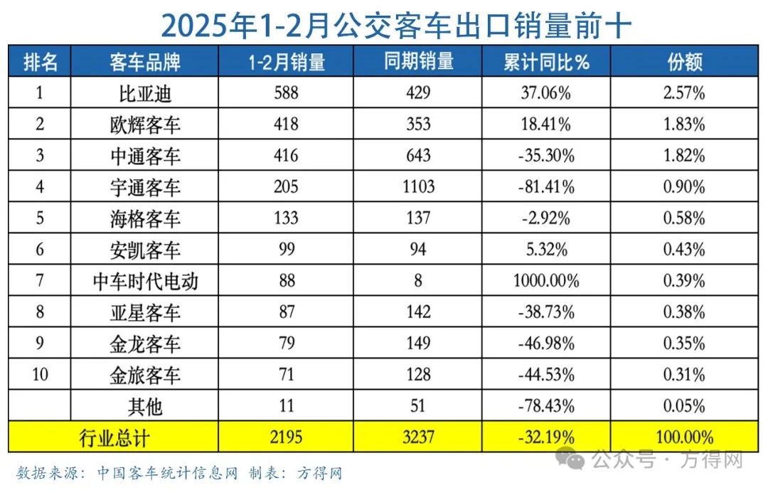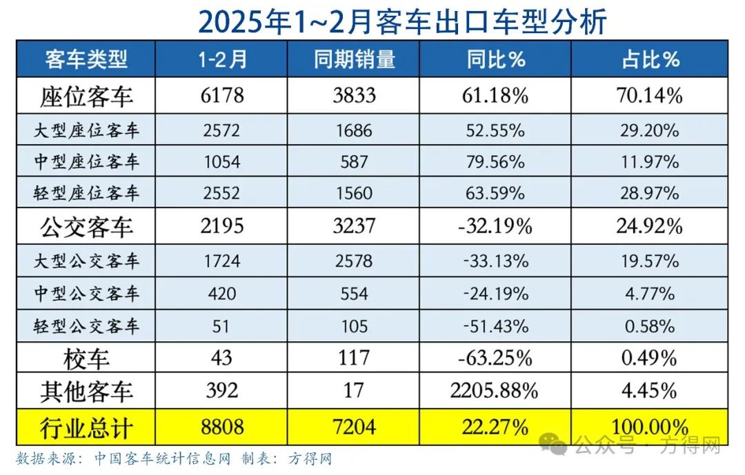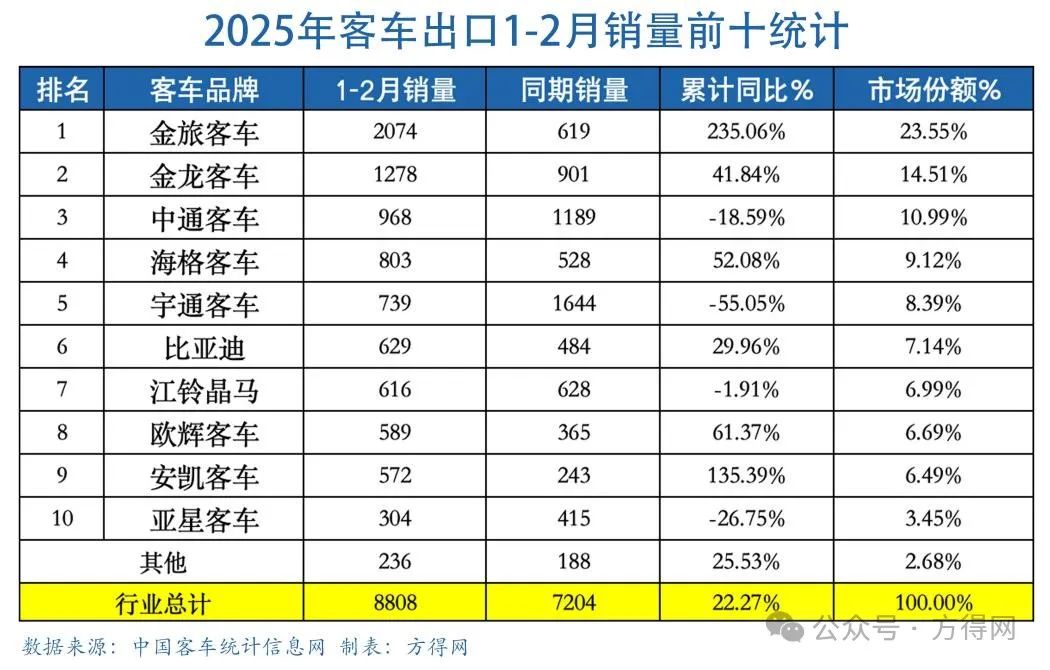 2025年1~2月,客车出口销量8808辆、累计同比增长22%!