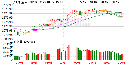 个股方面,上涨股票数量超过2700只,涨幅股票数量接近50只。人形机器人概念股表现活跃,肇民科技涨逾10%,精工科技涨停,秦川机床涨近10%。烟草概念股表现活跃,润都股份涨停。下跌方面,黄金概念股展开调整,西部黄金跌超5%。