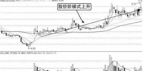 图形特征:(1)股价呈波浪形上升,如果后面的上升浪成交量比前面的上升浪成交量大,称为后量超前量。(2)后一浪放量上升时,如股价正好通过前一浪顶部,则股价还会涨。