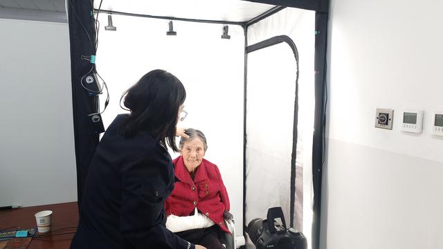 当日下午16:00许,户政中队的民警发现,一名坐轮椅老人在家人的陪同下准备办理身份证,民警便立即决定开启“绿色通道”帮助老人。民警贴心的将老人的轮椅推进人工拍照室摄影棚内,细心的帮她整理好了衣服、头发,“请您坐好,看着相机的镜头不要眨眼睛……”,民警耐心的指导着老人拍照,由于年龄较大、且老人的手臂又受了伤,简单的拍照一度很困难完成,系统不断提示“背景颜色比对过暗,检测不通过,再拍一次”,民警继续耐心的指导老人调整姿势,两次、三次、四次……,经过十几次十几分钟的尝试,照片终于检测通过了,民警立即引导老人到窗口办理。