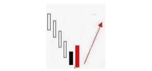 5、“看涨吞没形态”。此种K线图形出现在一轮明显的下跌趋势中,如果吞没形态具有下面3种参考性要素和特征,那么它们构成重要反转信号的可能性将大大地增强。1、在看涨吞没形态中,第一天的实体非常小,而第二天的实体非常大。这种情况可能说明原有趋势的驱动力正在消退,而新趋势的潜在力量正在壮大;2、第二天的实体向前吞没的实体不止一个;3、看涨吞没形态出现在超长期的或非常急剧的市场运动之后。
