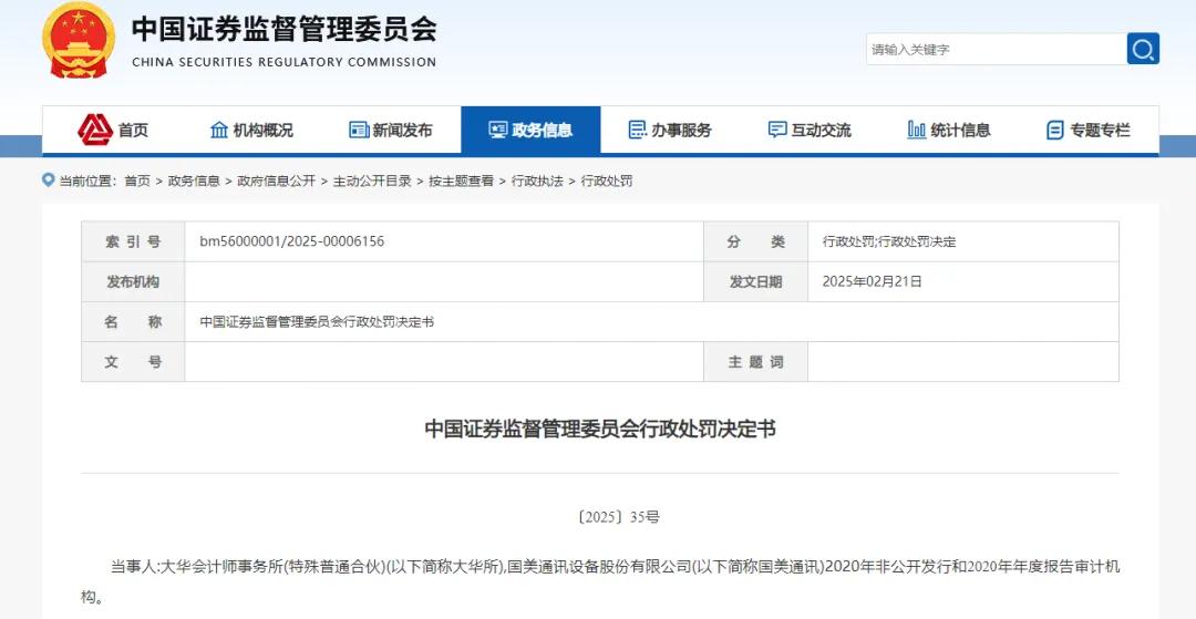 依据《中华人民共和国证券法》(以下简称《证券法》)的有关规定,我会对大华所对国美通讯非公开发行审计未勤勉尽责行为和国美通讯2020年年度报告审计未勤勉尽责行为进行了立案调查,依法向当事人告知了作出行政处罚的事实、理由、依据及当事人依法享有的权利。应当事人大华所、朴**、刘**、樊**的要求,我会举行了听证会,听取了当事人及其代理人的陈述和申辩。本案现已调查、办理终结。