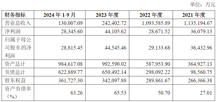 玉龙股份主要从事黄金贵金属采选及大宗商品贸易业务。2021年、2022年、2023年及2024年1-9月,公司实现营业收入分别为113.52亿元、109.36亿元、24.24亿元及13.00亿元,归母净利润分别为3.64亿元、2.91亿元、4.45亿元及2.88亿元。