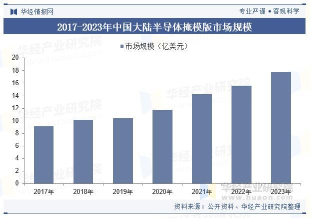 全球2021年至2023年将新建84座大型芯片制造工厂,总投资额超5,000亿美元;以新能源汽车为代表的细分市场持续推动半导体需求增长,在高需求背景下预计2022年新增33家工厂、2023年新增28家工厂。《世界晶圆厂预测报告》显示,2021年至2023年,中国大陆预计将建设20座支持成熟工艺的大型芯片制造工厂,据统计我国半导体掩模版市场规模由2017年的9.12亿美元增长至2023年的17.78亿美元,年复合增长率约为11.77%。