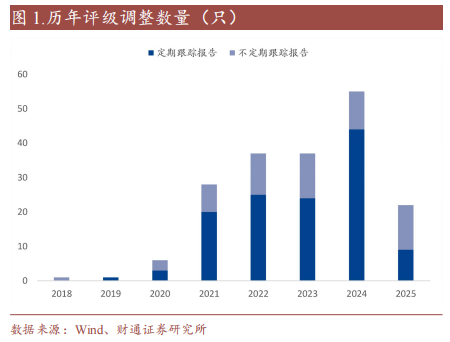 2025年评级披露速度较往年未有明显差别,定期评级下调数量略高于往年同期。历年转债评级披露和调整高峰主要在6月中下旬,截至2025年6月17日,转债市场2025年共有222只转债披露评级(包含不定期和定期评级),略高于2024年212只,略低于2023年317只。2025年定期评级下调数量略高于同期,目前共有8只转债下调评级,高于同时期2024年下调的4只和2023年6只。