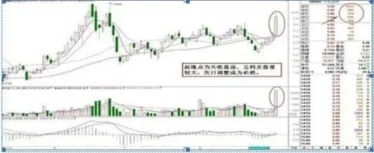 强势上涨途中出现地量小阴线时,可在尾盘或者次日早盘逢低择机买入。量越小,次日涨的可能性越大。