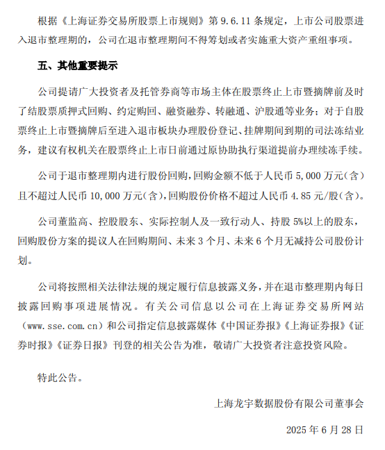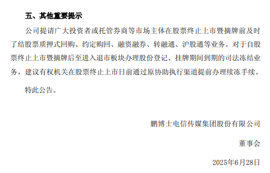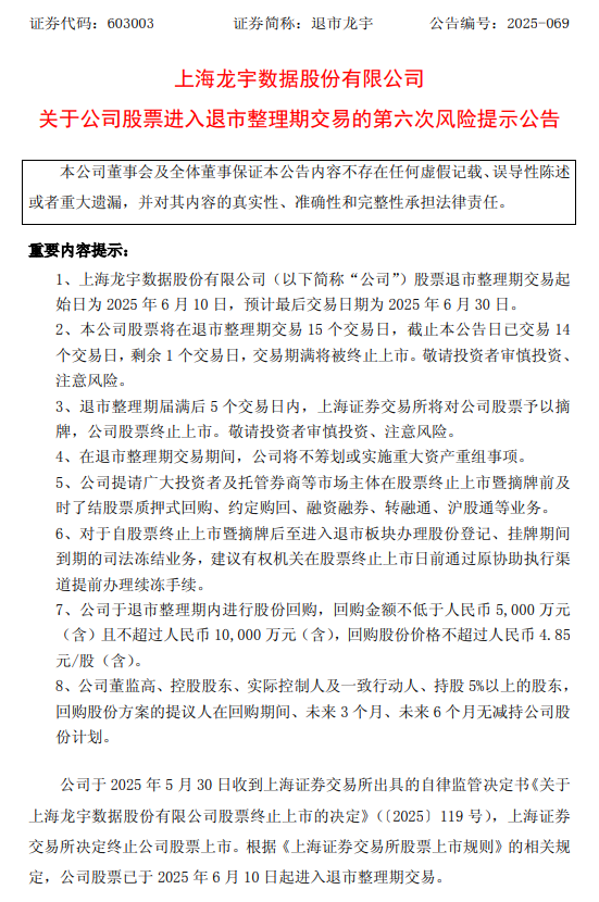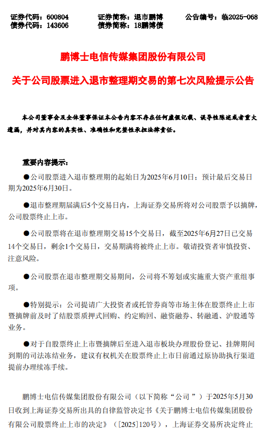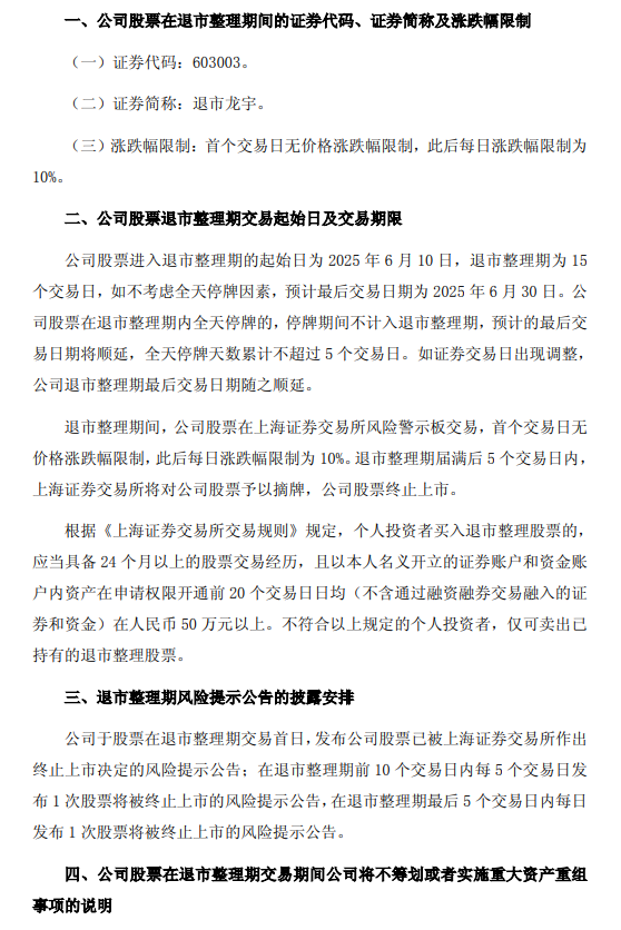 【退市整理】退市龙宇、退市鹏博:关于公司股票进入退市整理期交易的第七次风险提示公告