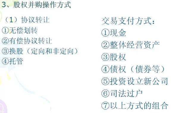 第三,股权型的重组模式,所持股权的整合与转让等。