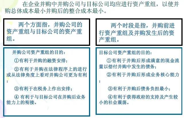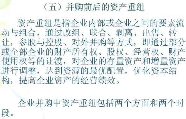 第一,主要围绕固定资产和子公司进行的资产型重组模式,如固定资产的重组,流动资产的重组,长期投资的重组,子公司的重组,项目的重组,专利权的重组,商标权的重组,业务产品的重组等;