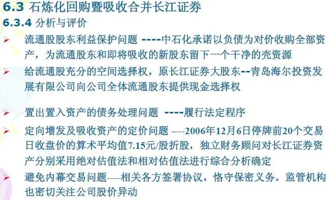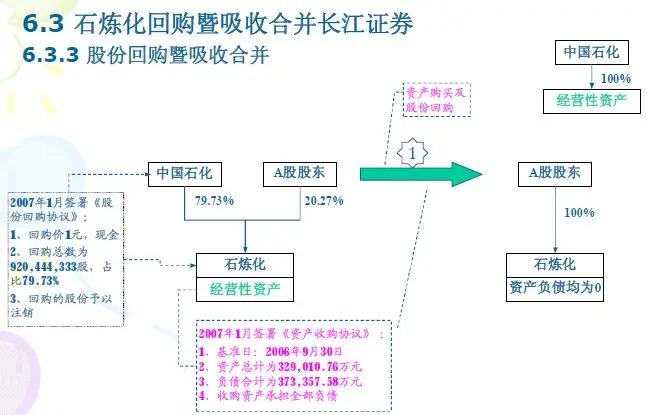 ▶中国石化对石炼化提出私有化,通过重大资产出售、定向回购股份暨以新增股份吸收合并长江证券以及与股权分置改革结合并互为实施前提的总体方案