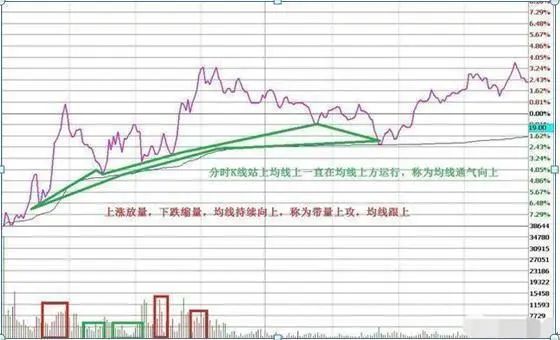 高开后高走,均线向上通气,后浪底高于前浪顶,均线跟上(带量上攻)