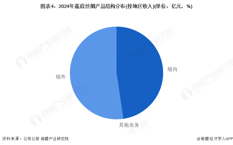 分区域来看,嘉欣丝绸收入超一半来自于境外地区,2024年公司境外实现营业收入23.86亿元,占比52.25%;国内营收21.75亿元,占比总营收47.62%,作为国内的丝绸龙头企业,海外市场拓展实力强劲。