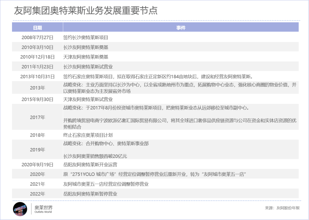 只是相较于近郊奥莱的成功,友阿城市奥莱的战略推动并不顺畅,地级市的拓张亦不容易。2022年,当仅开业一年半的岳阳友阿城市奥莱项目宣布停业,友阿集团十余年的奥莱长梦似乎回到了起点。
