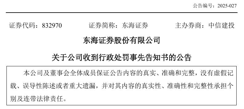 根据相关规定,就中国证监会拟对东海证券实施的行政处罚,东海证券享有陈述、申辩并要求听证的权利。