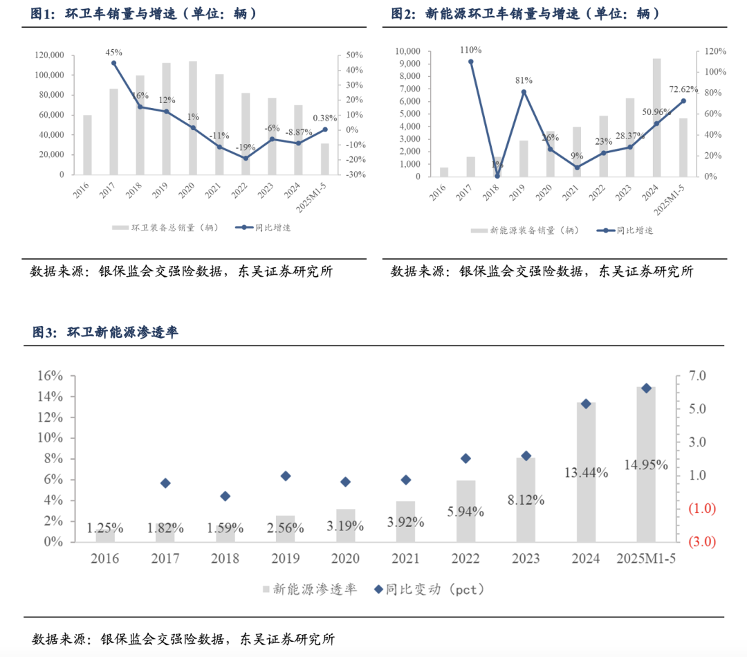 1.5.环卫装备:2025M1-5环卫新能源销量同增73%,渗透率同比提升6.26pct至14.95%