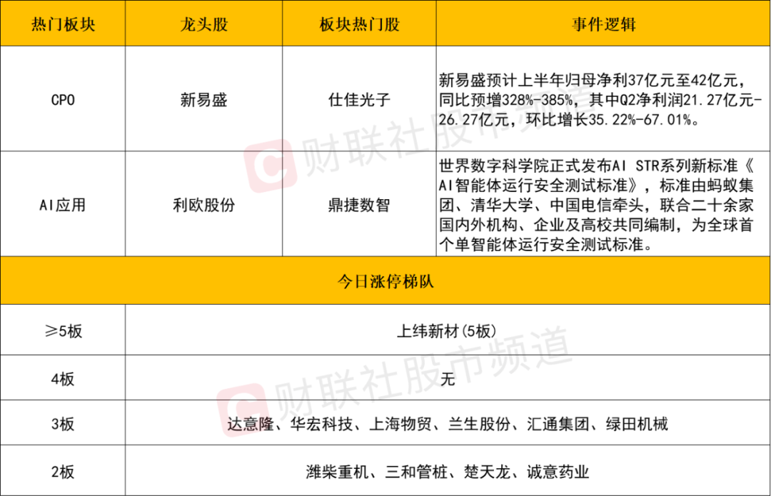 赚钱效应标签:CPO、AI智能体、腾讯概念