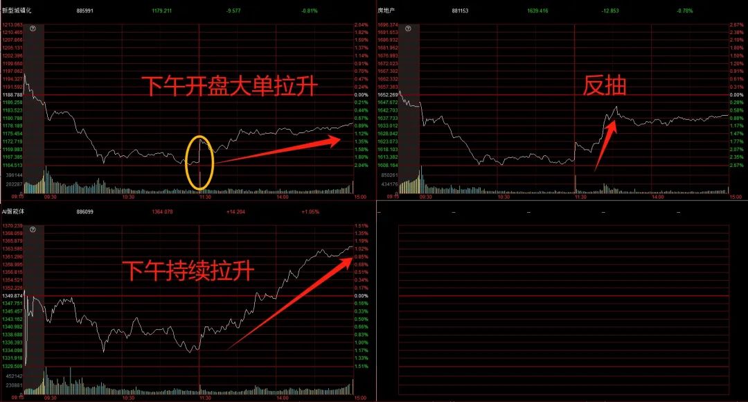 题材上我个人更倾向于还是轮动,而且是一次性轮完那种,下午开盘后第一个半小时,资金发酵的是城镇化,地产还反抽了一下。后面又开始拉智能体,找了半天没看到小作文啥的,不知道预期是在哪里。