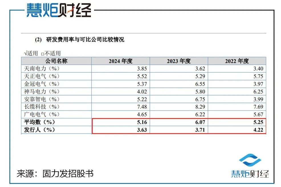 数据显示,在2022年至2024年中,固力发认定的同行业可比企业的平均研发费用率则分别达到了5.25%、6.07%、5.16%。