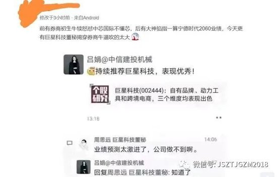 甚至,吕娟这不是第一次公开吹票,上次吹票还是在朋友圈狂推巨星科技,然后被董秘回怼,“业绩预测太激进了,公司做不到啊”。
