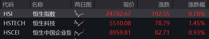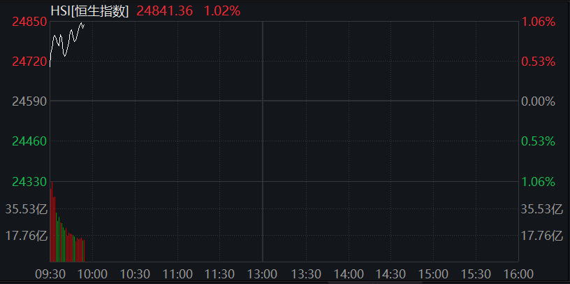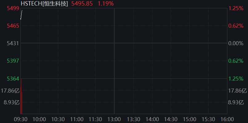 恒生科技指数涨超1%。