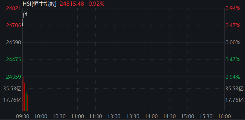 香港恒生指数涨幅扩大至0.9%,迈向2022年2月来收盘高点。