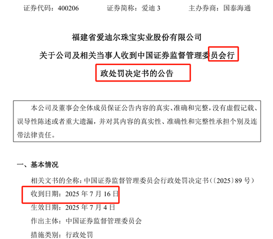 7月16日,爱迪尔公告收到证监会的《行政处罚决定书》,公司因为2017-2021年期间的年度报告虚假记载被监管重罚,其中时任董事会秘书朱新武被罚款400万元,并被采取10年证券市场禁入措施。
