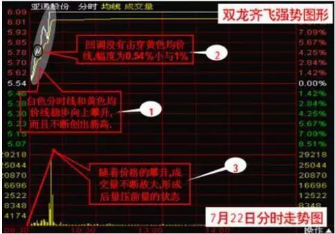 “盘口双龙”战法主要是研究股票分时图中的白色分时线和黄色均价线的关系,从中发现和解决股票临盘操作的问题.是一套完整的短线分析实战技法。它强调临机而动,一击而中。