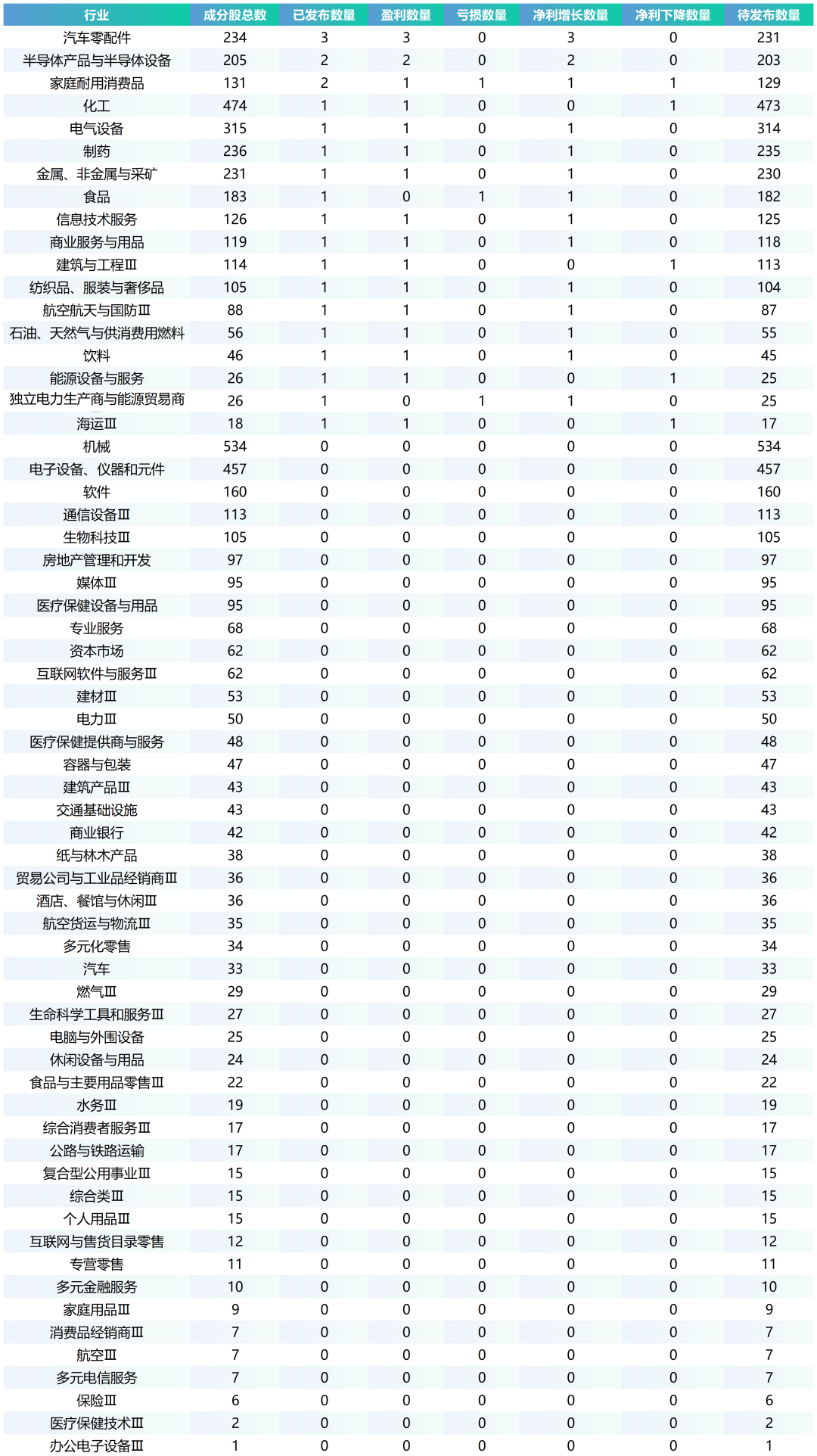 截至当日各行业半年报发布情况一览: