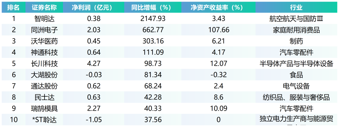 截至当日所有半年报净利润增幅TOP10: