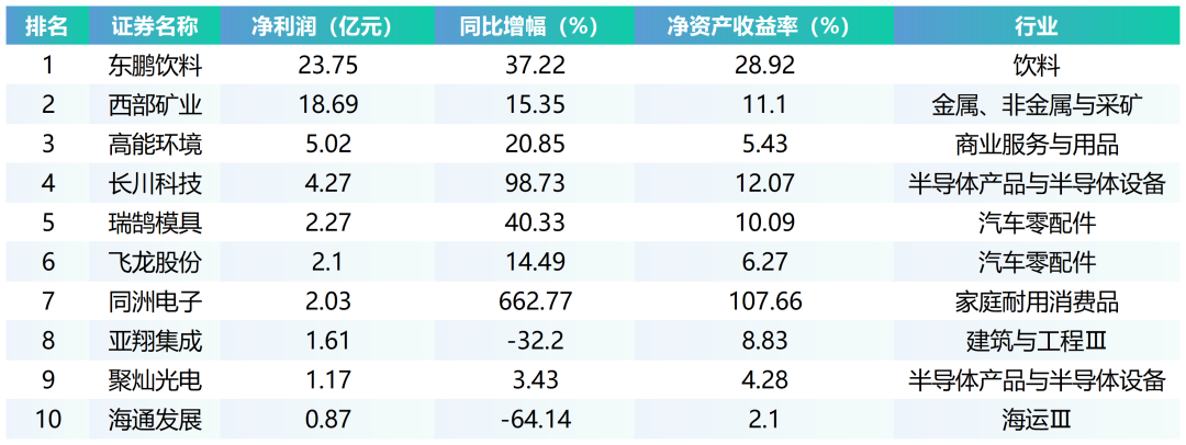 截至当日所有半年报净利润TOP10:
